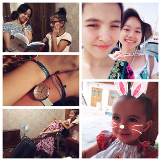 Ҳамчунин, ман оилаи дуюм дорам: оила мизбонам! Дар Амрико, факат як апа дорам, ва ҳамеша ба вай барои кӯмак ва бозӣ меравам. Инҷо, iPadи хоҳарамро таъмир кардам, ва вақте ки бо духтари апаи мизбонам бозӣ мекунам, бо ,хандааш ҳаловат мебарам.